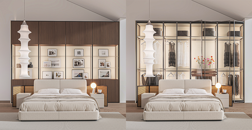 支持衣柜、書柜、酒柜、餐邊柜、展示柜等多種功能切換,滿足不同生活場景。